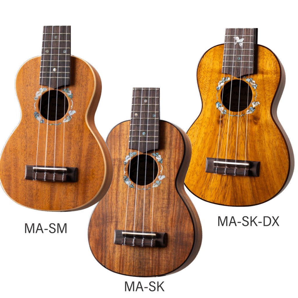 Soprano Series MA-SM マホガニー単板(サテン)¥88,000MA-SK ハワイアンコア単板(サテン)¥137,500MA-SWM ホワイトマンゴー単板(グロス)¥110,000 ※初回ロット完売MA-SK-DX ハワイアンコア単板(グロス/デラックス)¥154,000 価格は全て税込です MA-SM MA-SK MA-SK-DX 固定ページ 1 2 3